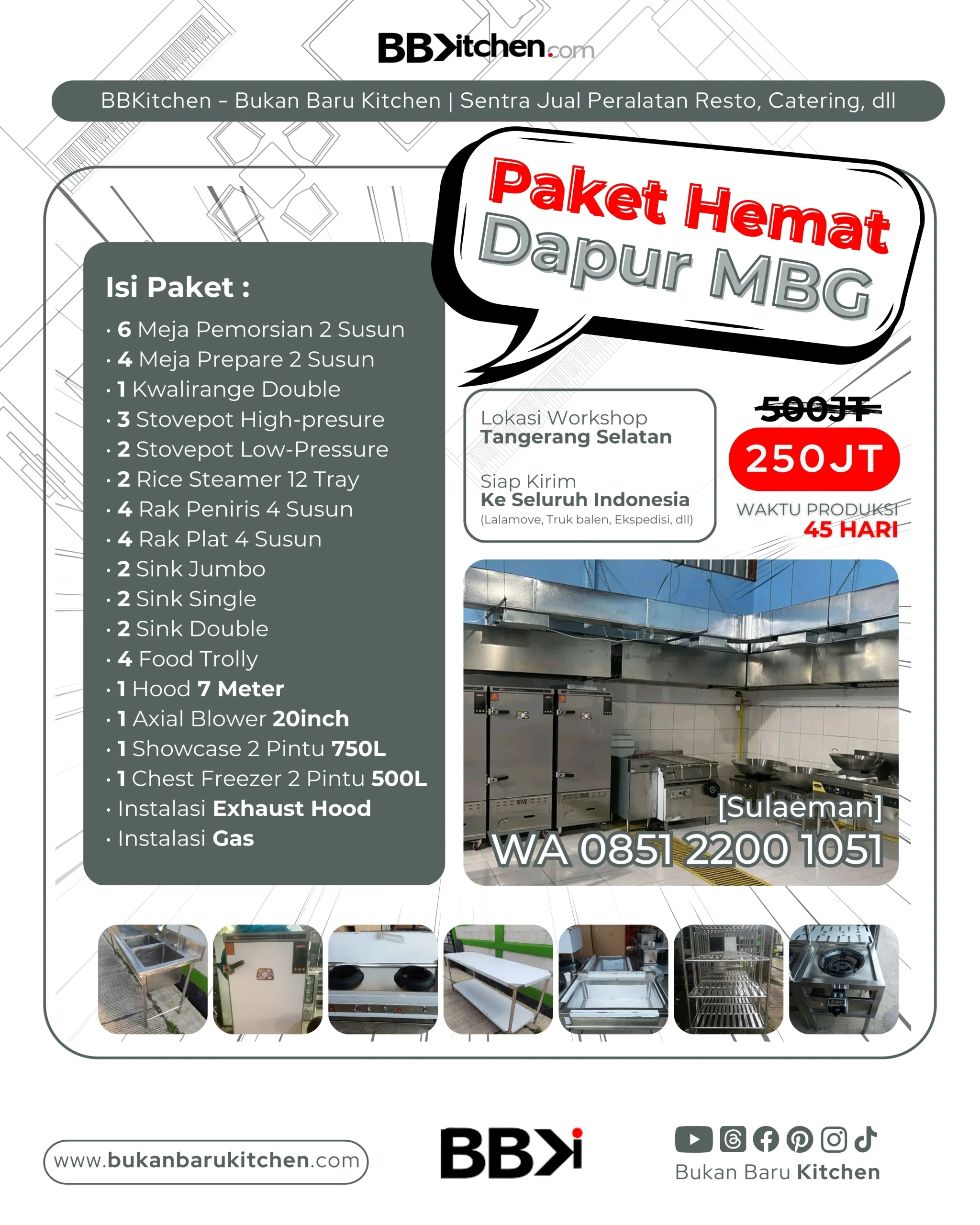 Jika Anda sedang mempersiapkan dapur MBG di Medan — baik itu di sekolah, panti, dapur sosial, atau lembaga lainnya — inilah saat yang tepat untuk mengambil keputusan tepat dan hemat.